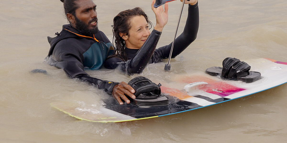 Kitesurfen ist zwar sicher – wenn man richtig geschult wird. Unsere Lehrer:innen sind die ganze Zeit an deiner Seite.